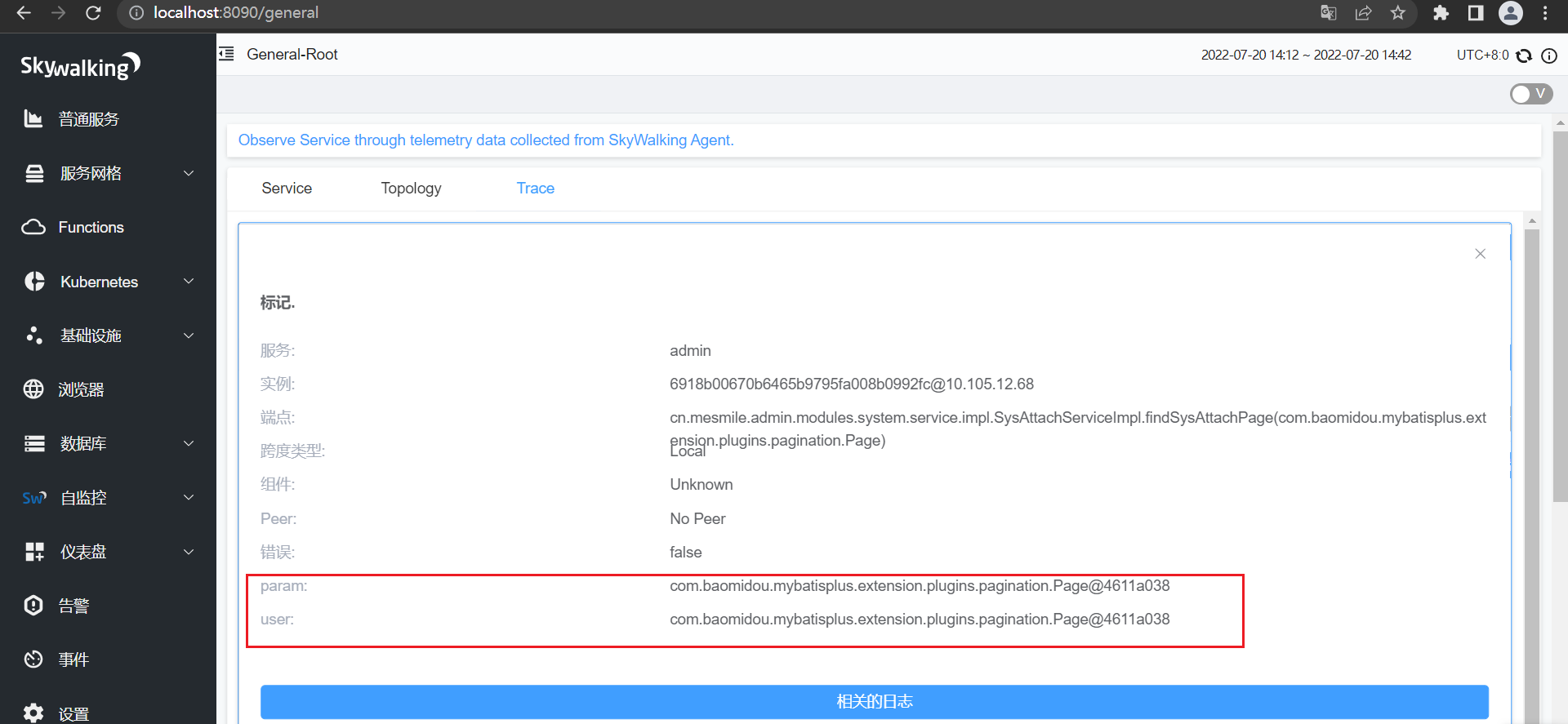 -DSW_AGENT_COLLECTOR_BACKEND_SERVICES=127.0.0.1:11800本地监控admin-boot应用: