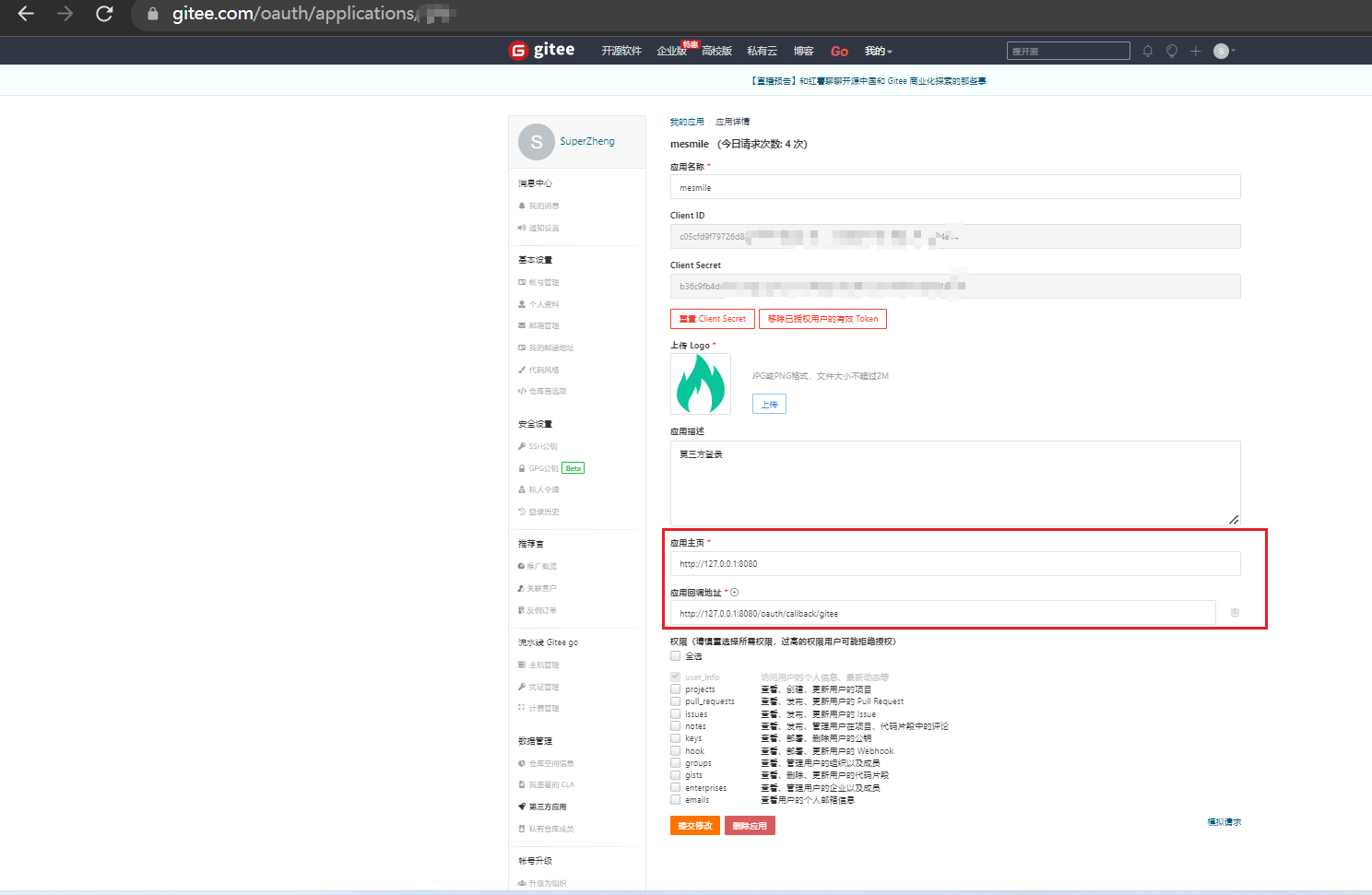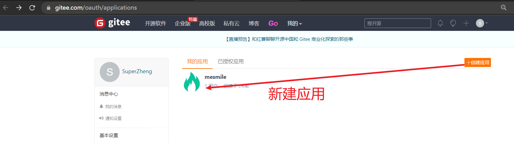 进入第三方应用页面(https://gitee.com/oauth/applications (opens new window))