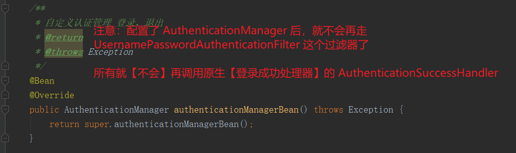 * public AuthenticationManager authenticationManagerBean() throws Exception {return super.authenticationManagerBean();}