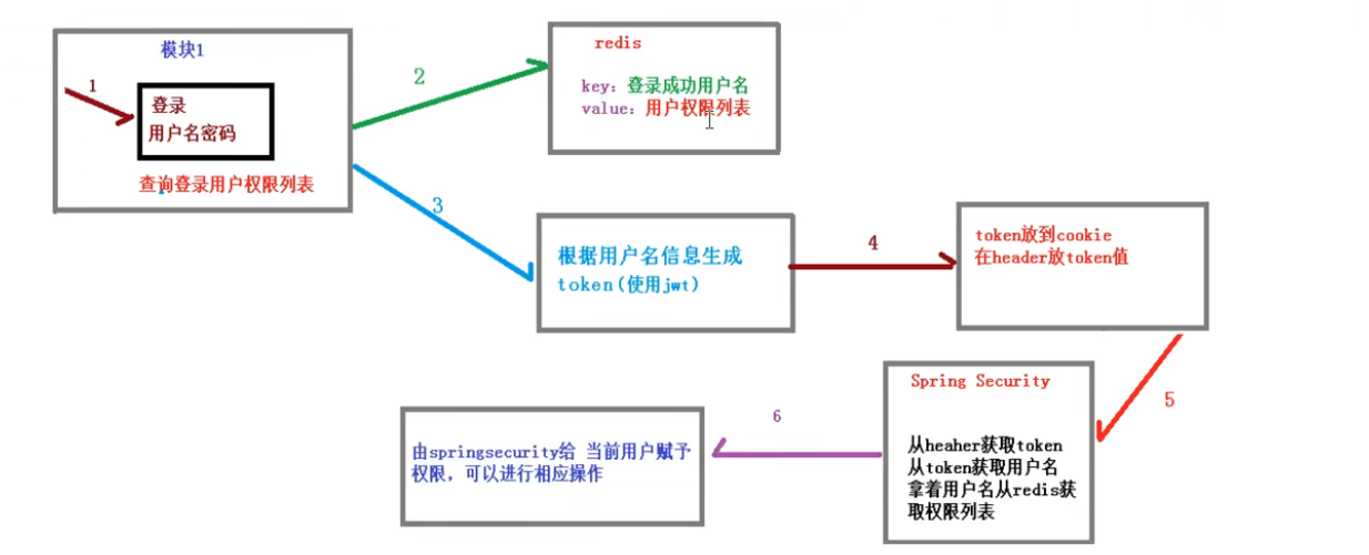 校验 ①定义Jwt认证过滤器 ②获取token ③解析token获取其中的userid ④从redis中获取用户信息 ⑤存入SecurityContextHolder(定义过滤器存入这里面)
