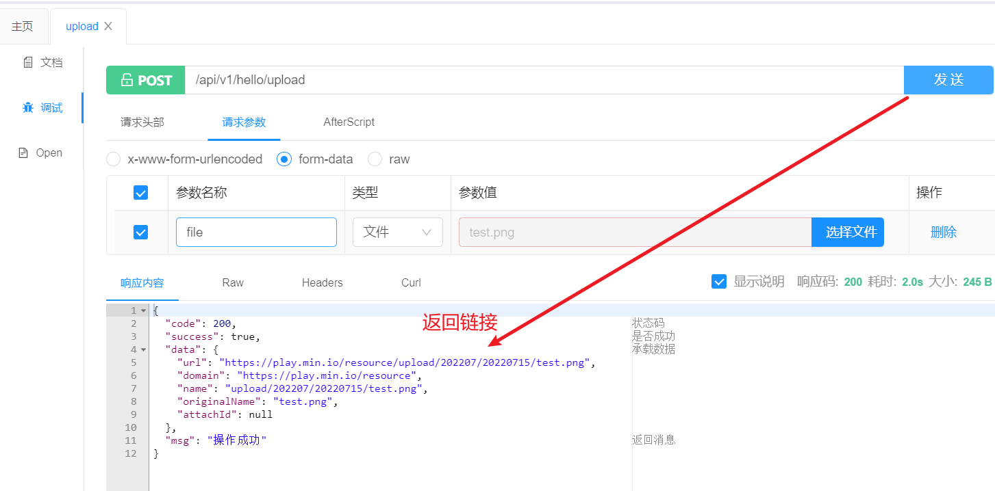 输入上传成功后返回的链接: